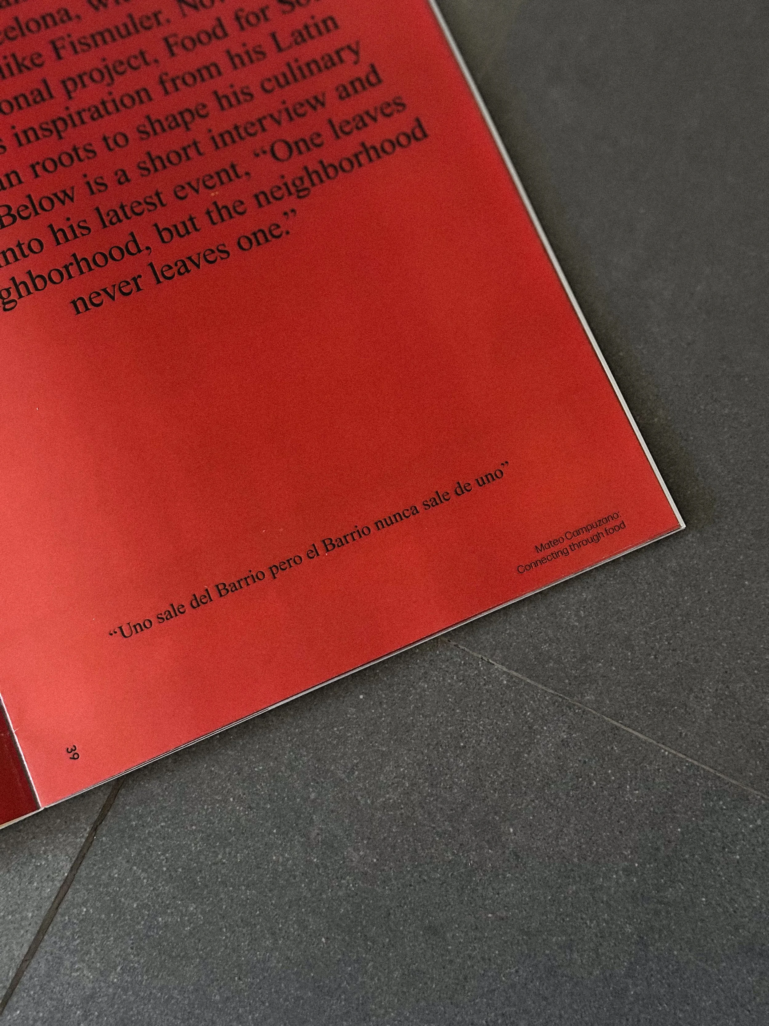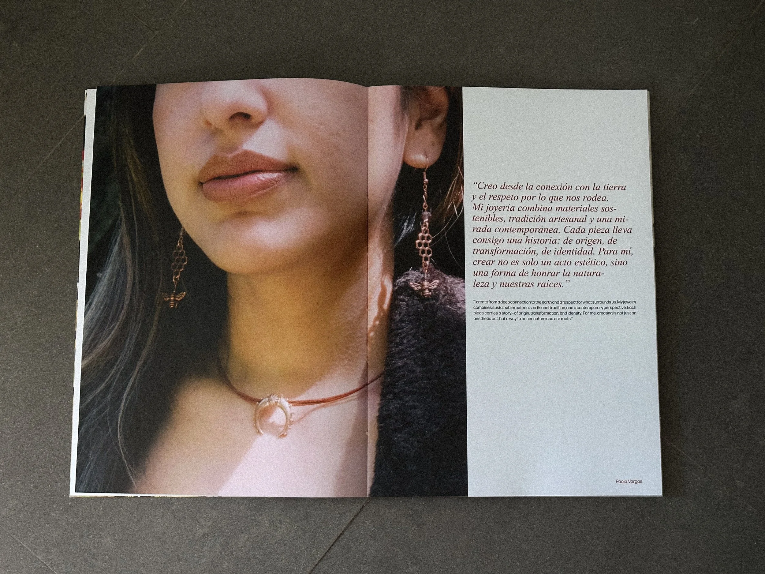 From a design perspective, Latente was developed to remain visually and materially close to a Latin American graphic identity. The art direction favors bold typography, saturated and expressive color palettes, and high-contrast imagery treated with subtle grain and texture to evoke tactility and immediacy. Layout rhythms were intentionally dynamic, balancing density and openness to mirror the publication’s thematic tension between heritage and disruption. To reinforce its artisanal character as a collectible editorial object, the prototype was produced with kettle stitch binding and a visible, colourful thread, emphasising craft, process, and individuality alongside the cultural narratives it presents.