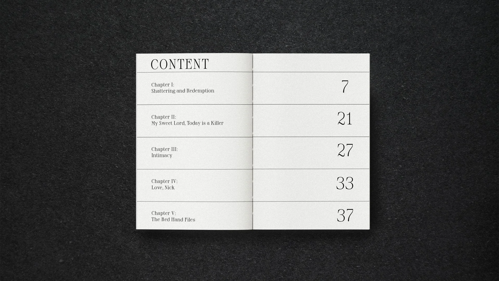 For the editorial project Faith, Hope and Carnage by Nick Cave, a book design was developed based on selected Red Hand Files, the written responses in which Cave addresses readers’ questions, doubts, and personal reflections. The publication concept translates the intimacy and emotional depth of this correspondence into a carefully constructed editorial object, where structure, typography, and material choices support a quiet and immersive reading experience.