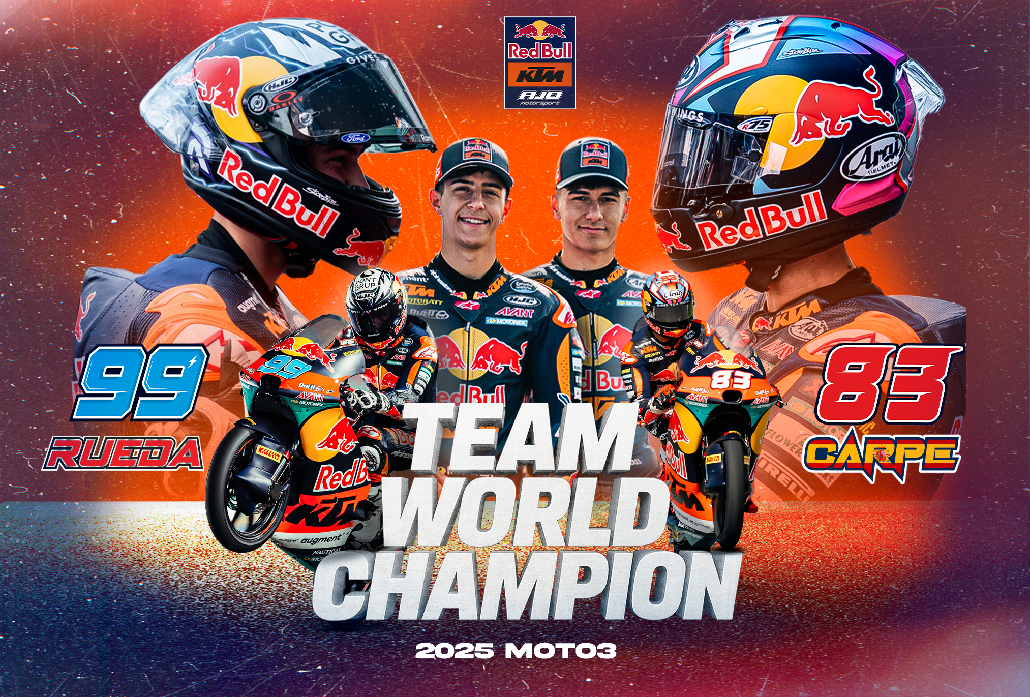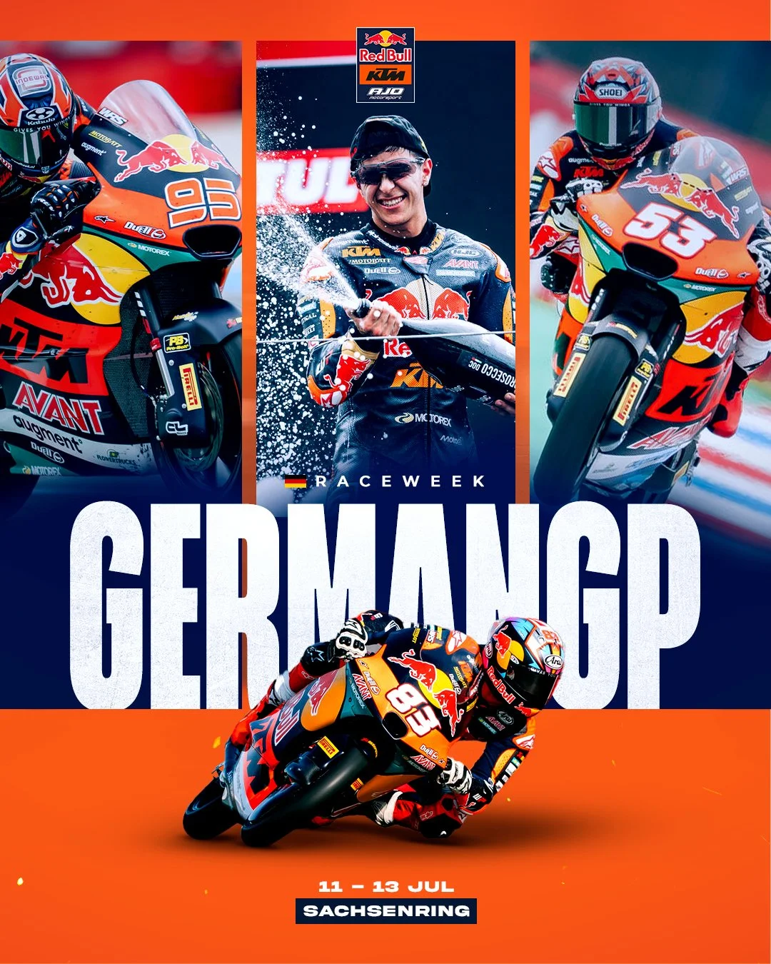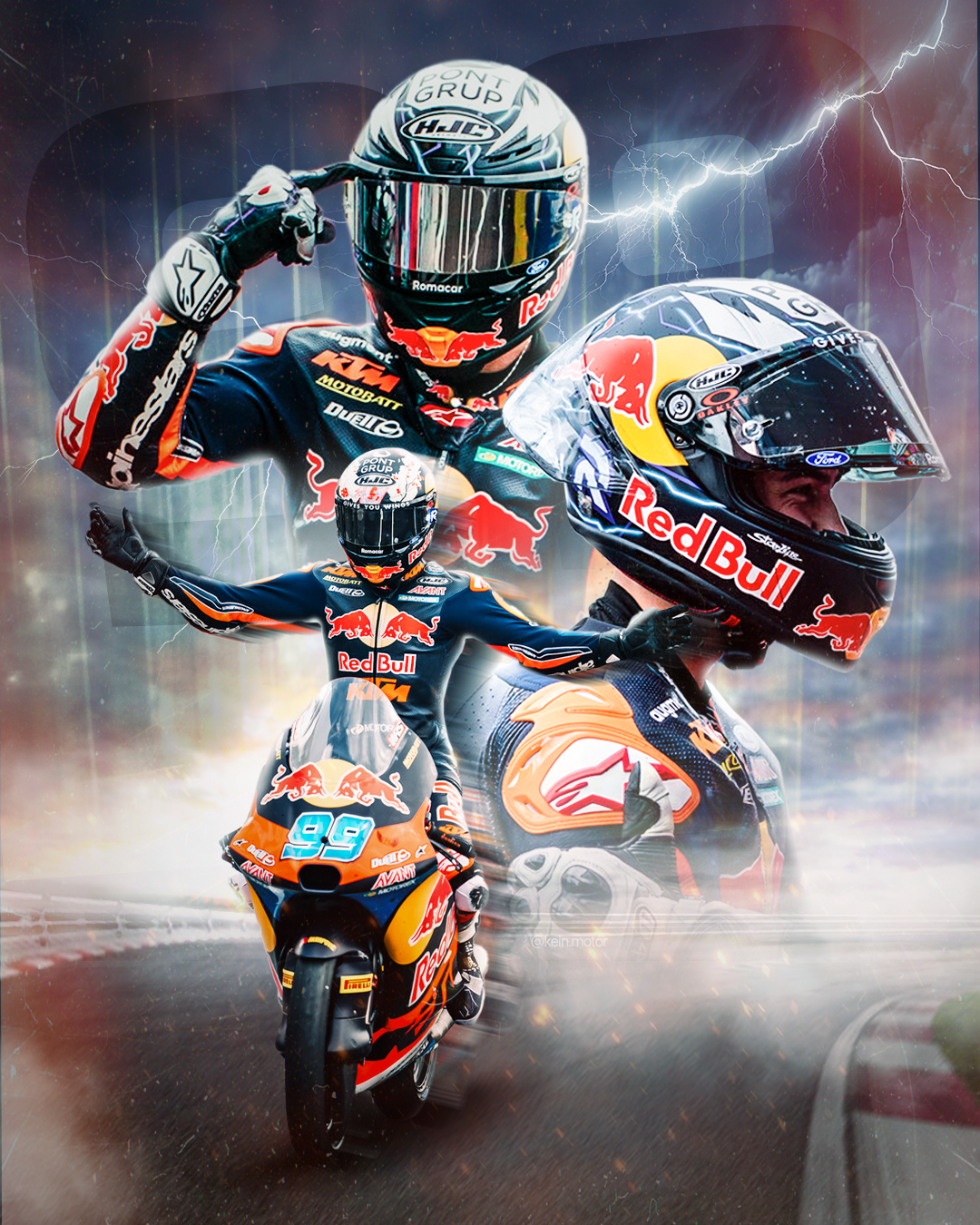 Working for Red Bull KTM AJO involved creating visual designs to announce upcoming races, known as Race Week content. These designs featured Moto2 and Moto3 athletes and focused on showcasing the next generation of MotoGP riders while staying true to the team’s and Red Bull’s visual identity.